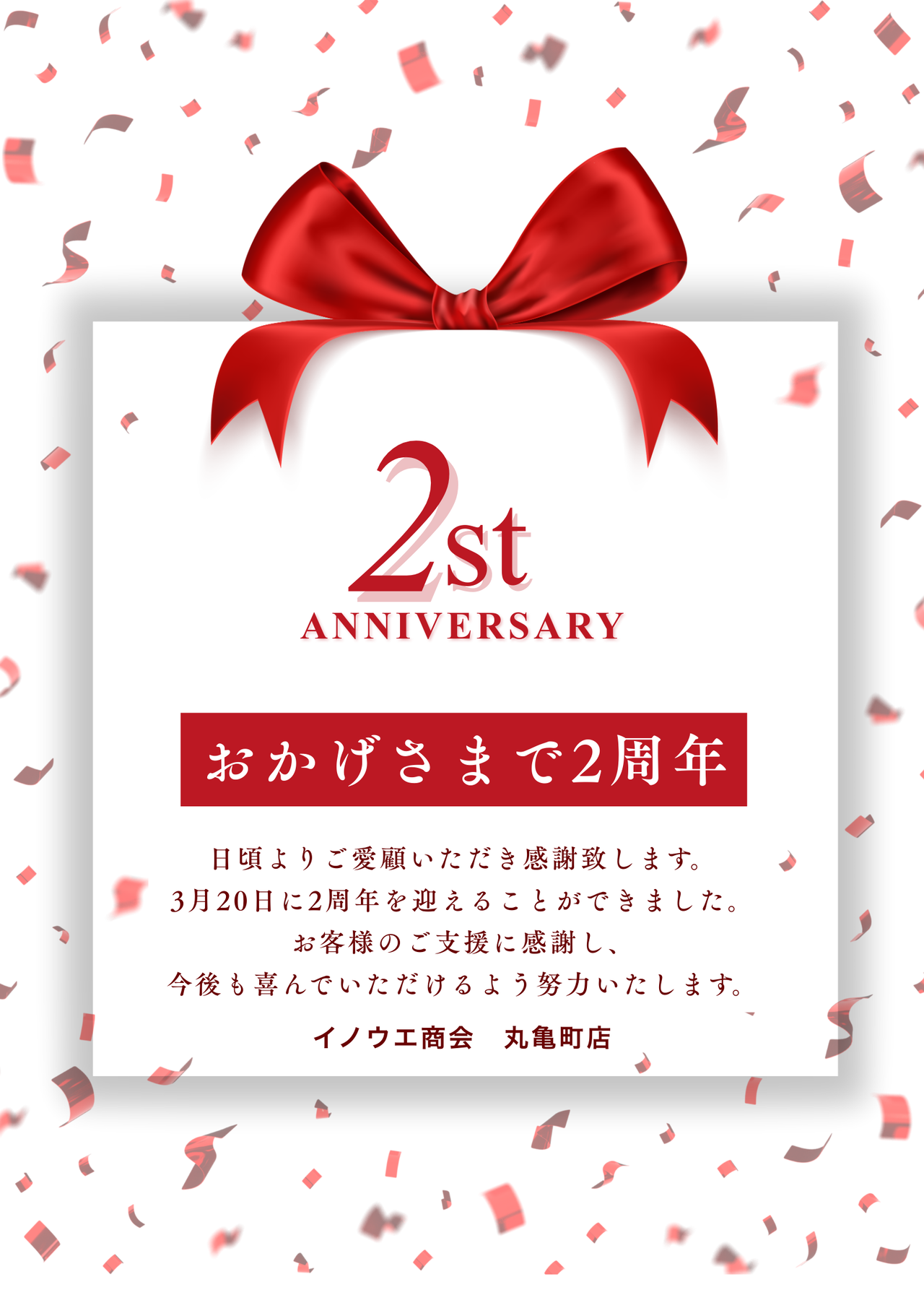 2周年を記念して3月20日(金)~3月22日(日)の間特別セールを開催。目玉商品多数。是非ご来店ください。